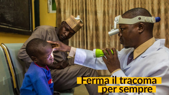 Musi è un bimbo di sette anni della Nigeria e ha il tracoma. Musi è sempre solo in un angolo e non alza lo sguardo perchè la luce gli ferisce gli occhi malati.