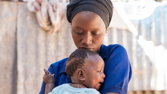Due mamme, Amy e Seynabou, stanno diventando cieche a causa del tracoma e quattro bambini, per il contatto fisico con la loro mamma sono a rischio infezione.
