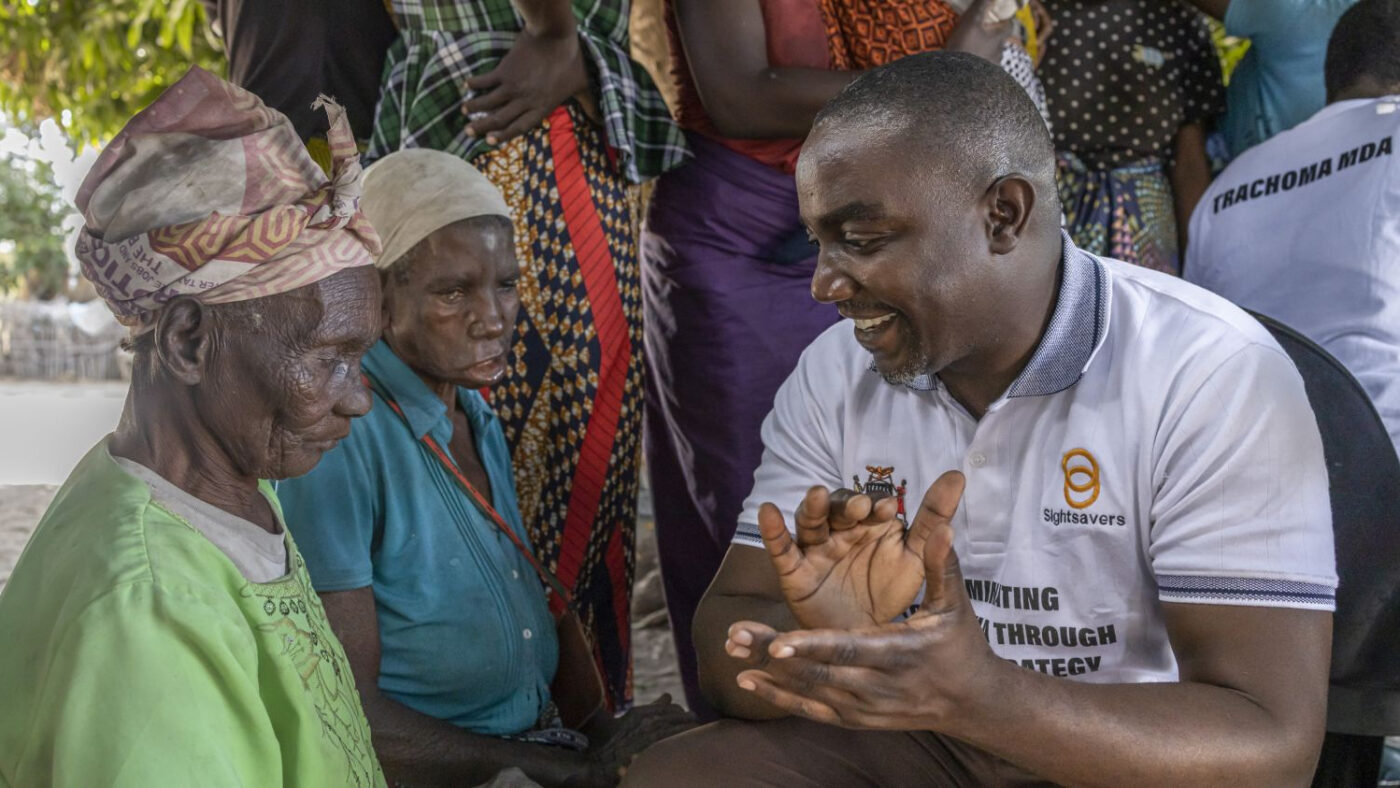 Chi non può recarsi nei centri sanitari viene raggiunto dai volontari di comunità formati da Sightsavers, che hanno il compito di andare casa per casa a distribuire le medicine.