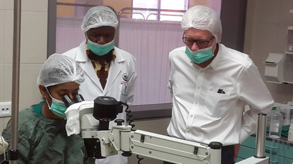 Il team di chirurghi della cataratta di Sightsavers raggiunge le aree più remote per assicurarsi che le persone vengano curate per problemi agli occhi.