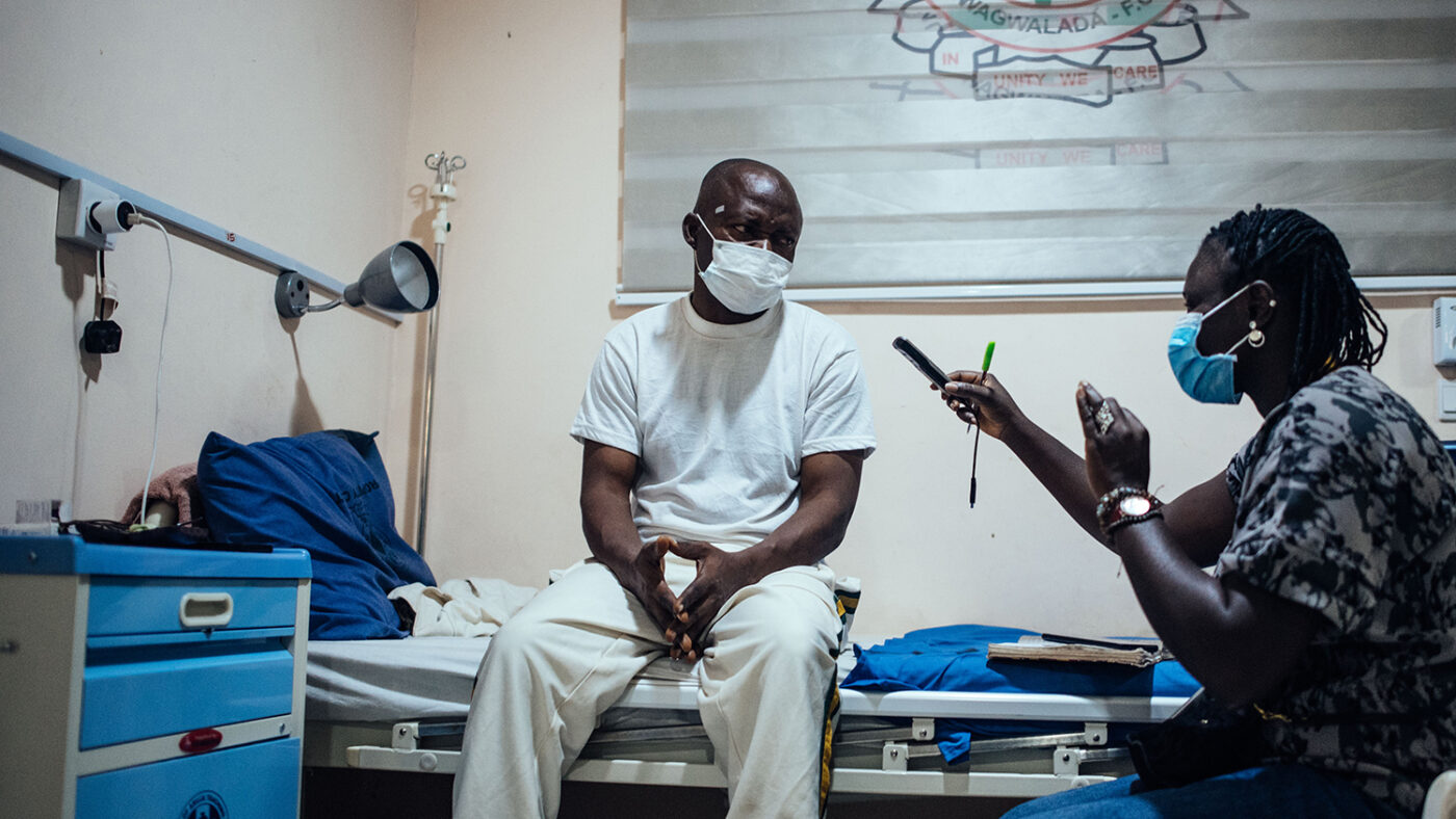 Un'infermiera accompagna Ubalaka Chris fuori dalla sala operatoria.