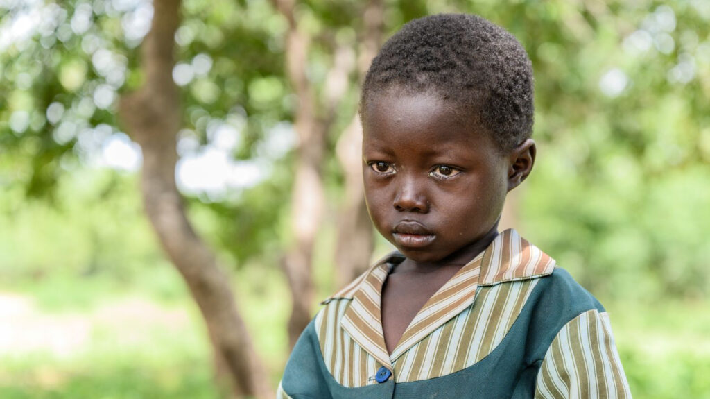 Masimpe è una bimba malata di tracoma, una degli ultimi che aspettano di essere curati in Zimbabwe dove manca poco per eliminare la malattia.