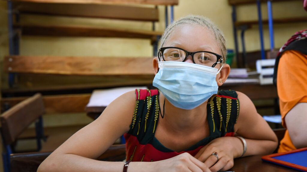 Tra loro c’è Noutene una ragazzina di undici anni ipovedente e affetta da albinismo, iscritta al progetto di Educazione Inclusiva reso possibile dalle vostre donazioni.